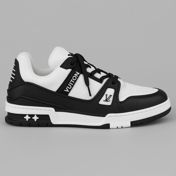 کتونی لویی ویتون LV کاستوم لوکس سفید مشکی Louis Vuitton Trainer Low مستر درجه یک کد 0140