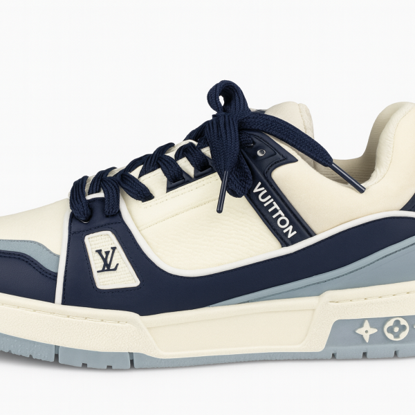 کتونی لویی ویتون LV کاستوم لوکس سفید آبی Louis Vuitton Trainer Low مستر درجه یک کد 0041