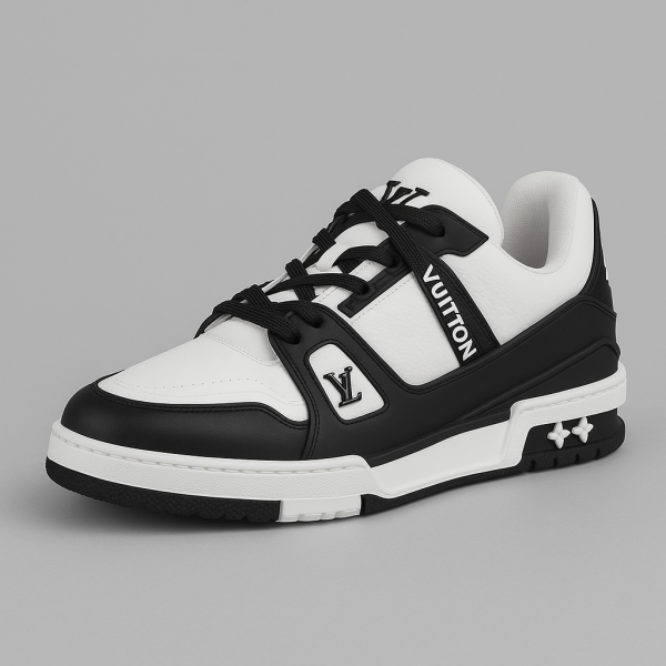 کتونی لویی ویتون LV کاستوم لوکس سفید مشکی Louis Vuitton Trainer Low مستر درجه یک کد 0140